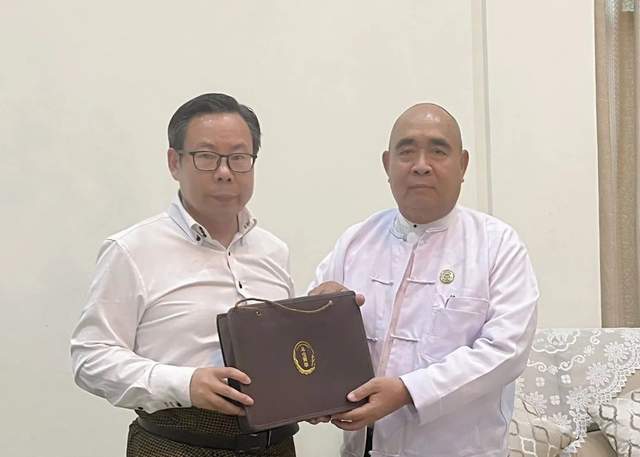 (缅甸国家文化艺术委员会终身高级顾问陈恩田拜会缅甸国家宗教事务与文化部部长吴哥哥先生)