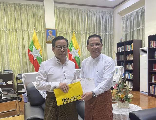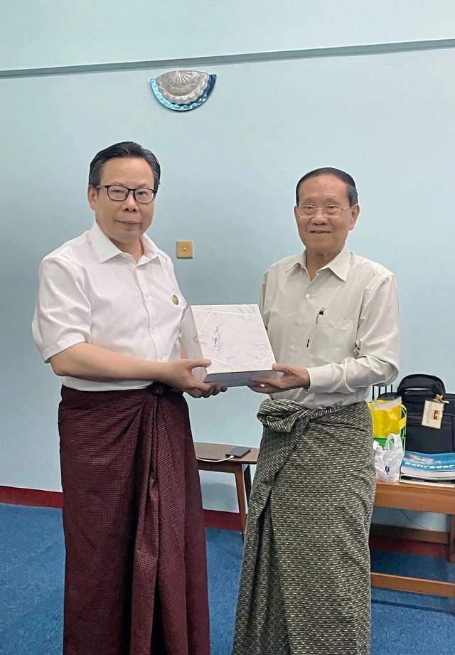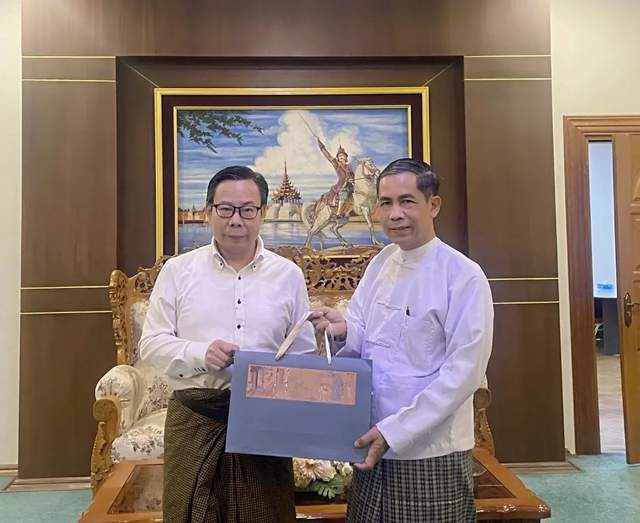 (缅甸国家文化艺术委员会终身高级顾问陈恩田拜会缅甸国际合作部部长吴哥哥莱先生)