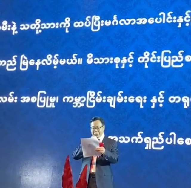 (世界和平丝带组织第一届至第八届委员会主席陈恩田先生在缅甸仰光发表《民心相通促和平》的演讲)