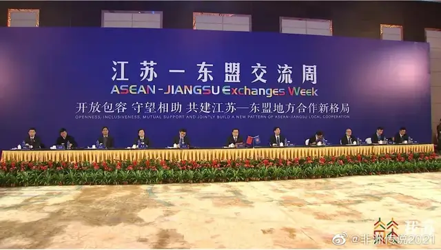 当日,江苏—东盟交流周开幕式以线上线下相结合的方式在南京、北京、上海,以及东盟有关国家举行。江苏省委常委、常务副省长费高云在南京主会场出席活动并致辞,东盟副秘书长艾格帕、中国—东盟中心秘书长陈德海、越南驻沪总领事宁成功分别致辞。