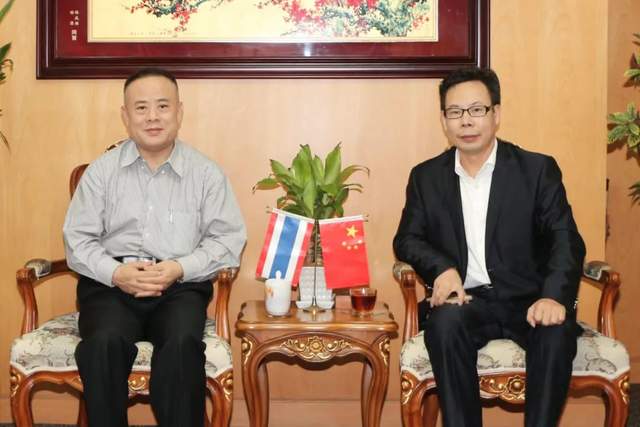 (图为陈恩田主席访问泰国华人青年商会,受到了创会会长李桂雄先生的热情接待)