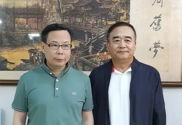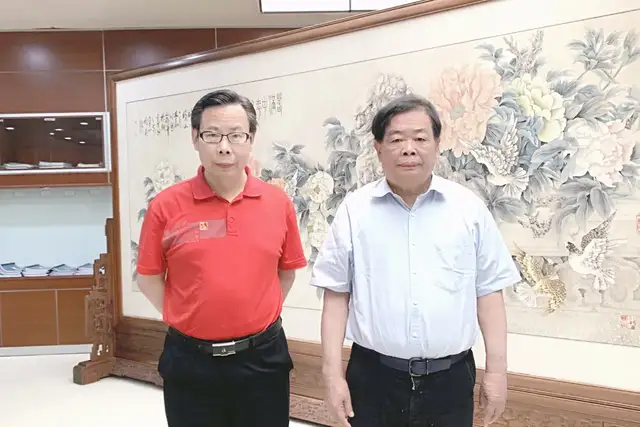 (图为世界民族团结大学筹备组负责人陈恩田与福耀集团董事局主席曹德旺先生)