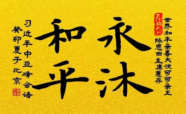 《永沐和平》源自中国领导人习近平主席在中国—中亚峰会上的讲话,习近平主席说:我们要共同践行全球安全倡议,坚决反对外部势力干涉地区国家内政、策动“颜色革命”,保持对“三股势力”零容忍,着力破解地区安全困境,携手建设一个远离冲突、永沐和平的共同体。