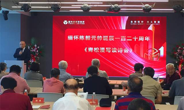 本报讯(记者陈龙狮)今天是中国共产党员,久经考验的无产阶级革命家、政治家、军事家、外交家、诗人;中国人民解放军的创建者和领导者之一、新四军老战士,中华人民共和国元帅,党和国家的卓越领导人,中共中央军委副主席,第一至三届国防委员会副主席,全国政协第三、四届副主席。中共第七、九届中央委员、第八届中央政治局委员陈毅同志诞辰120周年的日子,京城的华北诗苑和新四军老战士,都在积极缅怀共和国的元帅。